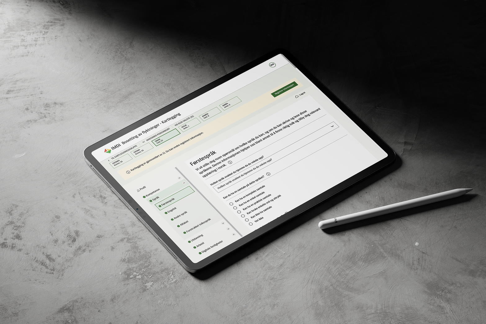 Mapping interviews are conducted using a digital form available through a web browser. This form contains questions about competencies, accommodation needs, connections to Norway, and lifestyles.